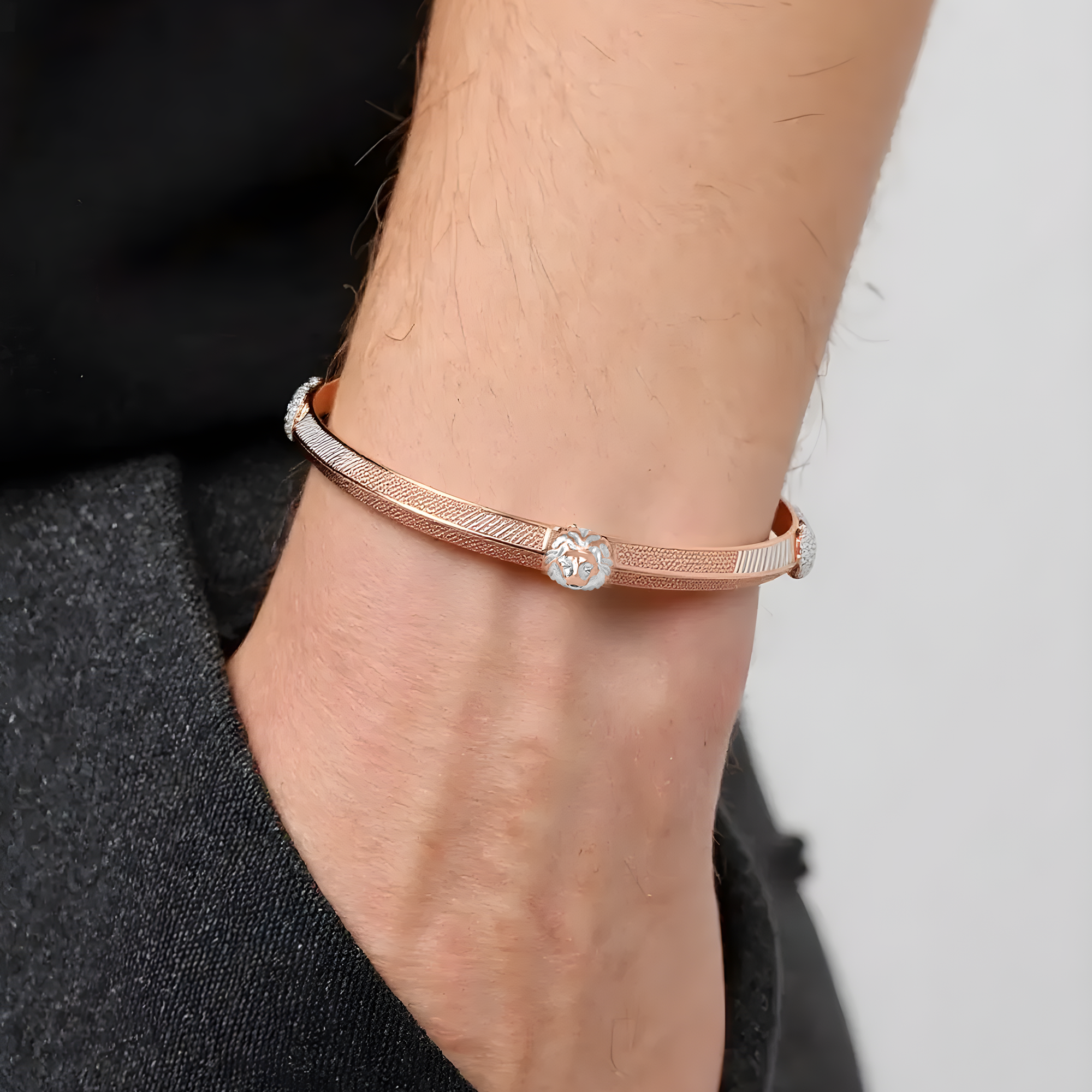 This distinguished men's kada blends rich rose gold with a contrasting polished band. Its unique ribbed or textured inner surface adds a refined detail, perfect for sophisticated everyday wear.